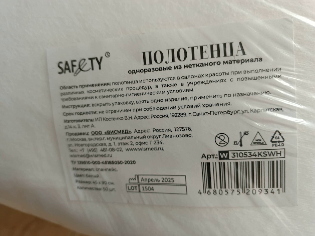 Одноразовые полотенца Safety из нетканого материала