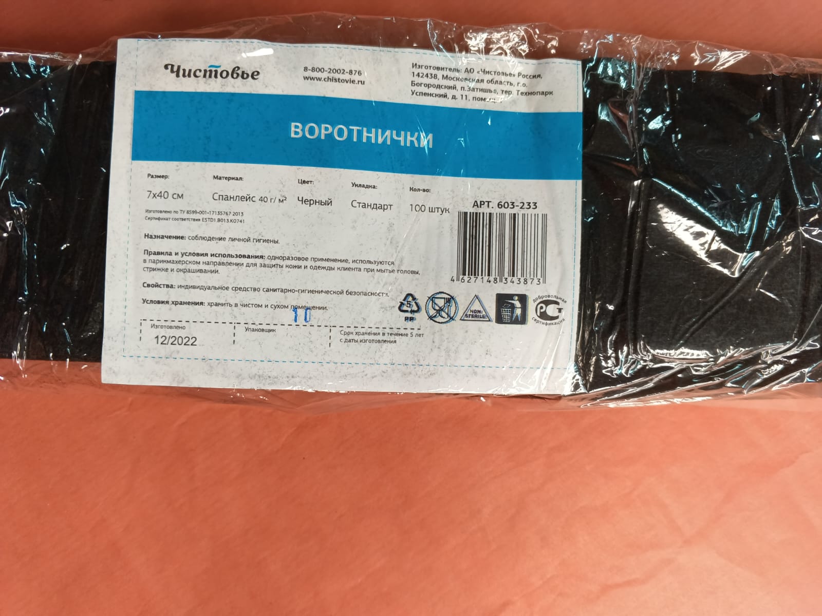 Воротнички из спанлейса, 7х40 см, черный, 100 шт/уп., 603-233