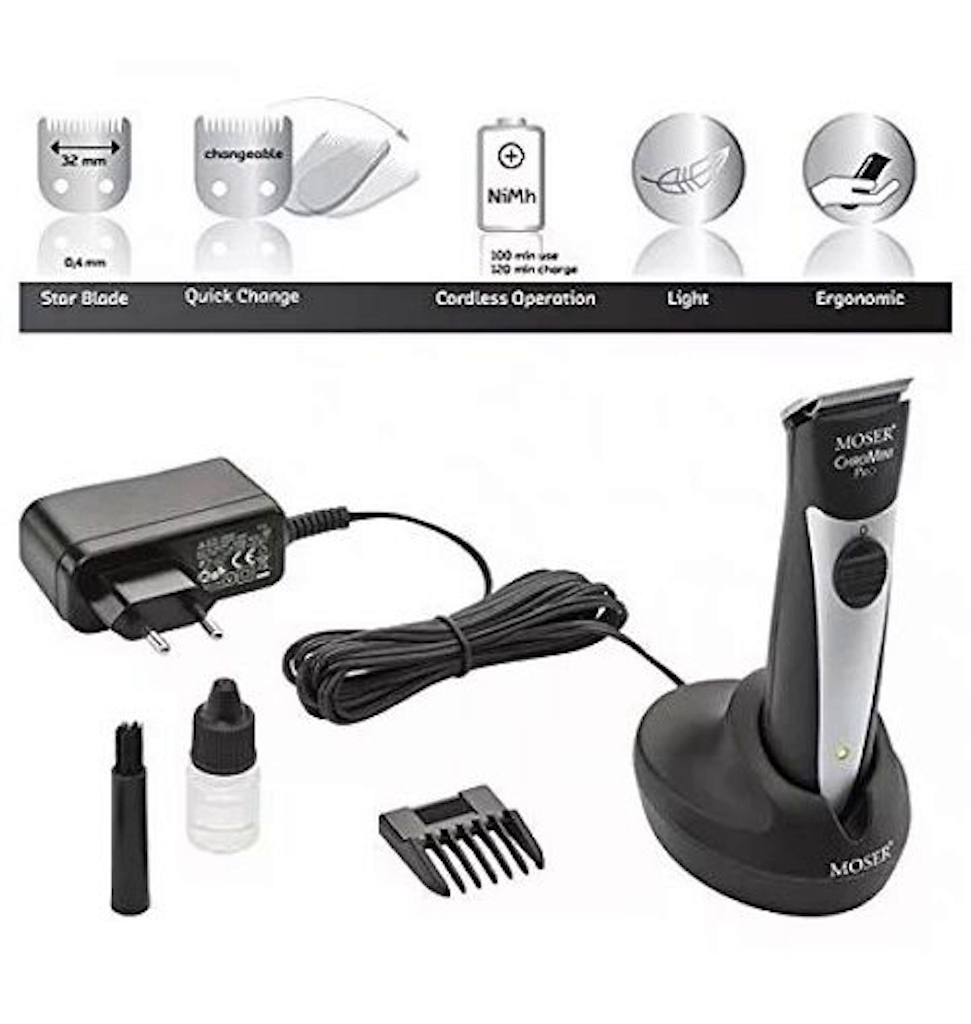 Триммер снабжен ножом с длиной среза 0,4 мм. Ширина ножа стандартная - 32 мм. Ножи из твердой хромированной стали применяют на сухих или влажных волосах. Блок лезвий снимается без усилий для чистки или смазки. Машинка совместима с узким дизайнерским ножом для рисунков и фигурным ножом для оформления узоров на волосах (продаются отдельно). Функция Quick Change разработана для замены ножей без отвертки, чередования режущих механизмов, упрощенной очистки и смазки ножей.