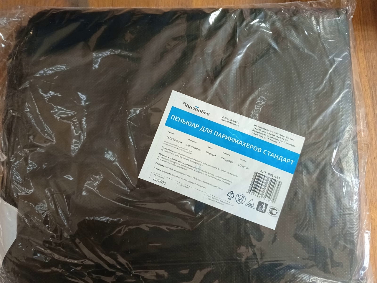 Пеньюар стандарт Чистовье из полиэтилена, 160х100 см, черный, 50 шт/упк 603-181