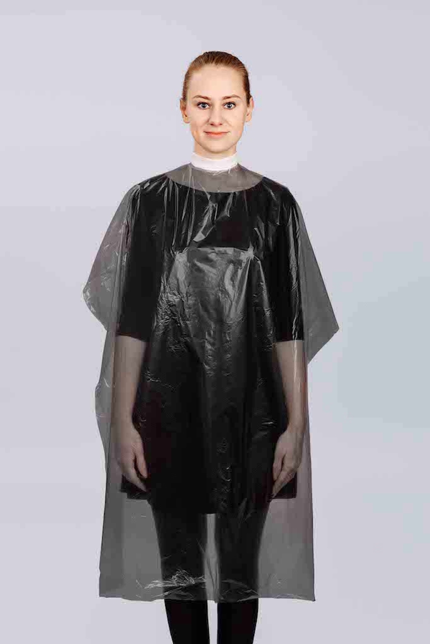 Одноразовые пеньюары из полиэтилена препятствуют попаданию воды, краски, лаков или других косметических веществ на одежду клиентов.