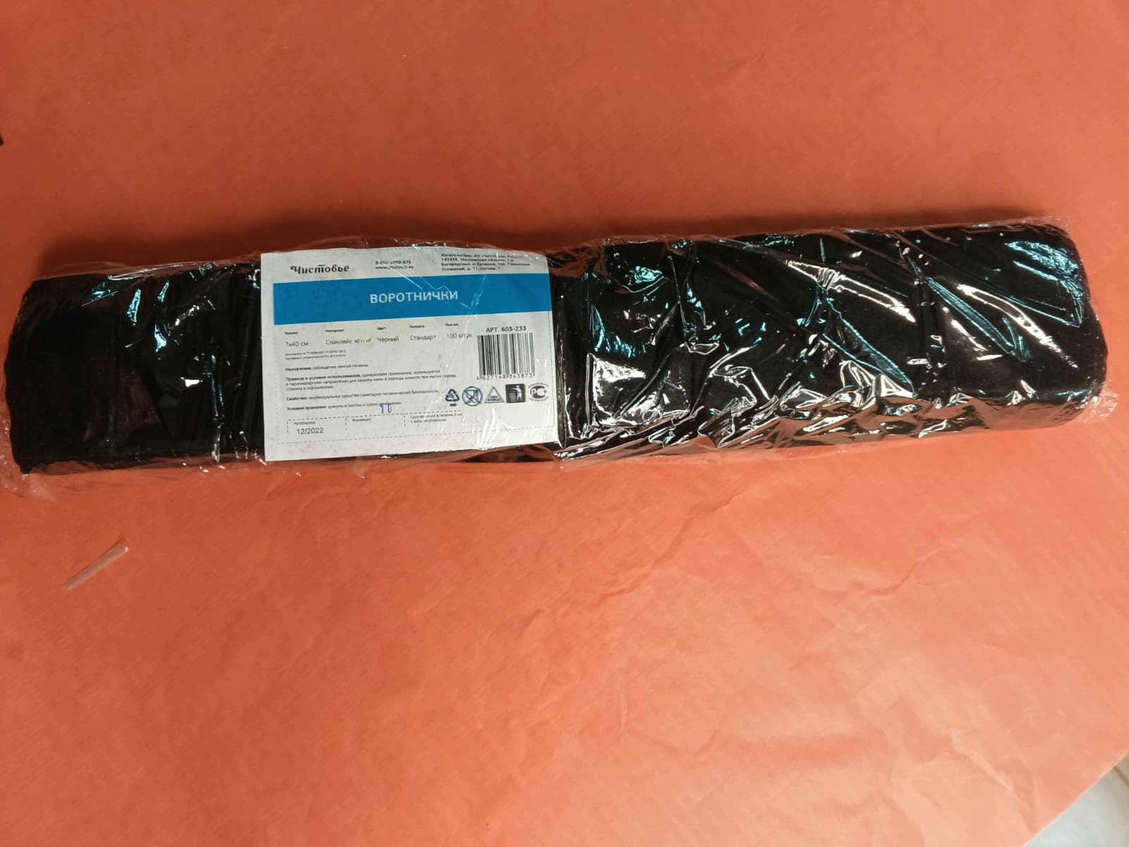 Воротнички из спанлейса, 7х40 см, черный, 100 шт/уп., 603-233
